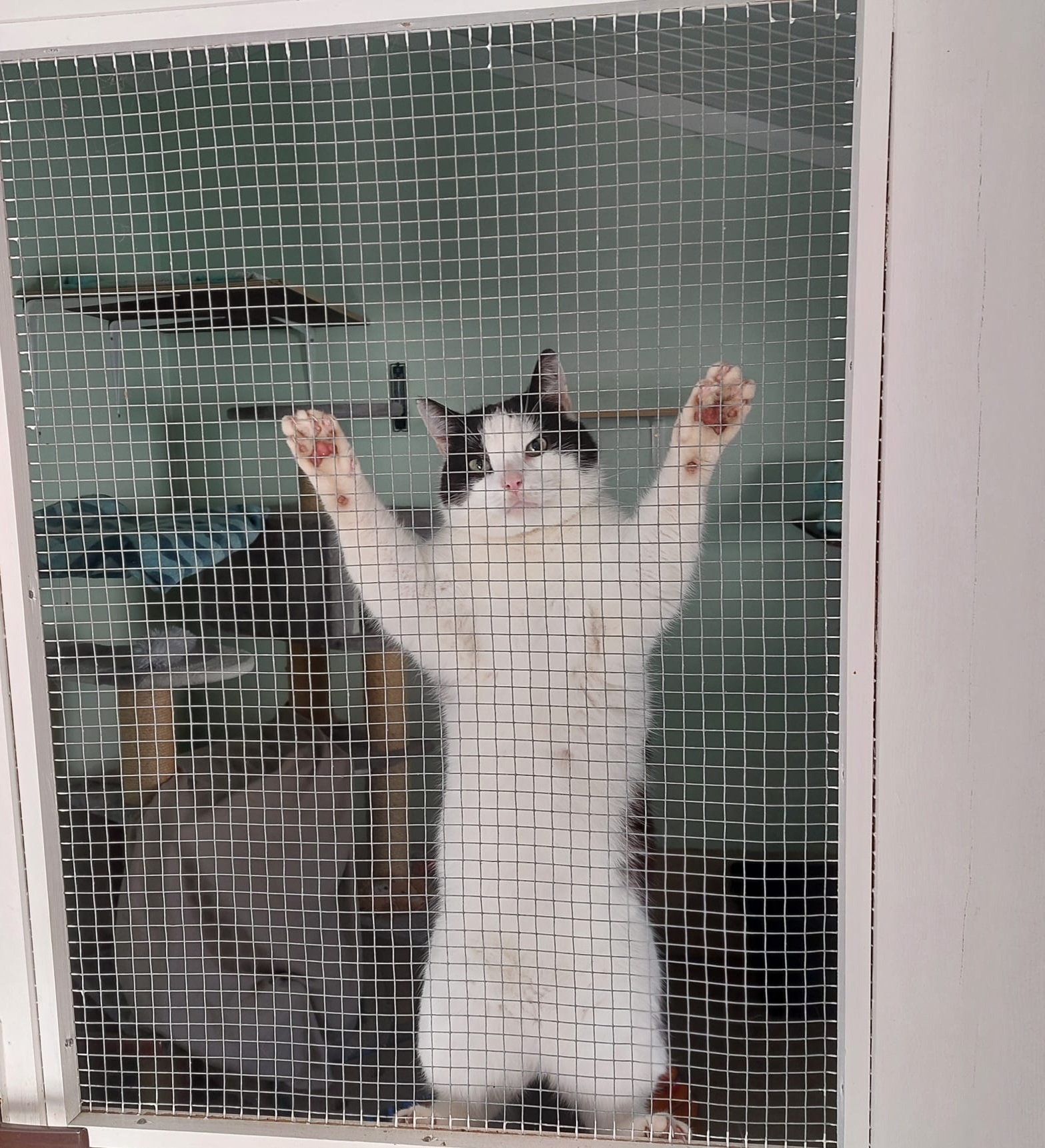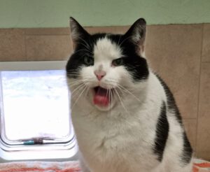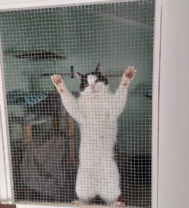 Ich bin übrigens ein Wohnungskater und laut Papier habe ich „FIV“, mir geht’s aber ganz gut! So gut, dass ich mich sogar an meinen Namen gewöhnt habe! Ein Freigehege wäre natürlich auch nicht schlecht.
