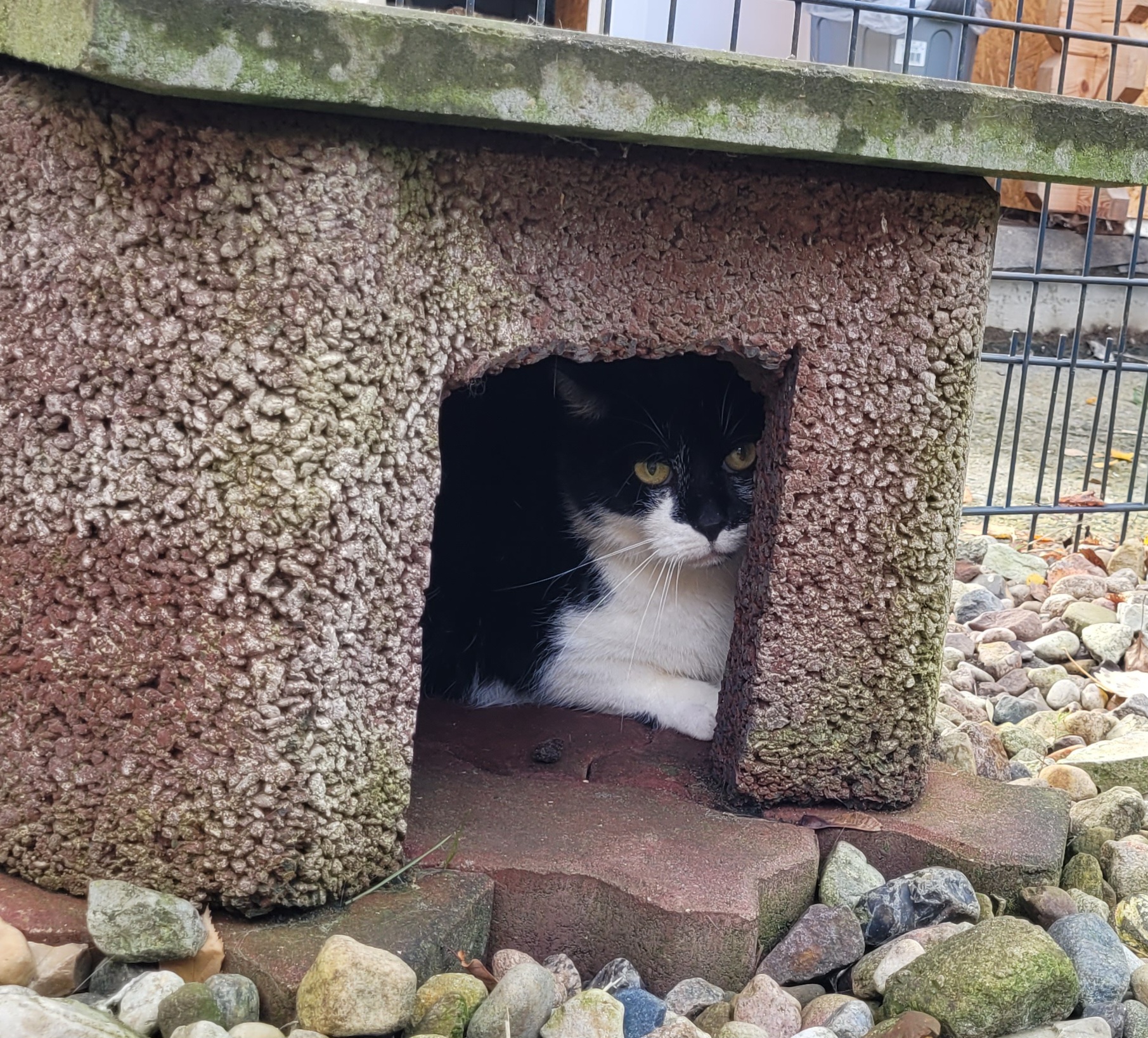 Hey, du. Ja, dich meine ich! Halllooo? Ja, gefällt dir meine Nase? Ja? Gut, die Katze, die an dieser Nase hängt, heißt „Bolle“ und freut sich ebenso dich zu sehen. Ich kann dir aus Erfahrung sagen, dass ich sehr scheu bin. So scheu, wie eine Art Tarnkappenkater, in geheimer Mission. Wobei ich mittlerweile schon draußen sitzen bleibe auf Entfernung.