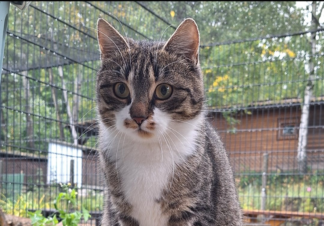 Ok, Nora, du schaffst es. Sei du selbst, glaub an dich, dann kannst du alles erreichen. Sei nicht schüchtern, du hast nur eine Chance… 1… 2… gut, äh…Ha… Hallo! Ich bin Nora und heiße neugierig! Nein, warte, das war falsch… andersherum: Ich bin Freigang und brauche Nora! Args, nein wieder falsch. Oh Mann, das werde ich nie schaffen…. ah, jetzt: Ich bin Nora, eine Katze – Überraschung! – sehr neugierig, euch Menschen beobachte ich am liebsten noch aus der Ferne, mit anderen verträglichen Katzen komme ich gut klar und ich brauche dringend meinen Freigang! Uuuund ich, äh, bin schüchtern. Aber das habe ich bestimmt schon ein paar mal gesagt, oder? Seufz… Ich bin einfach nicht geübt in solchen Dingen. Hey, hör mal, wenn du mir helfen willst, dann biete mir das Zuhause, das ich suche und dafür bekommst du die Katze, die dich mag. Also mich: Neugierig. Nein, Nora. Seufz, also mich eben!