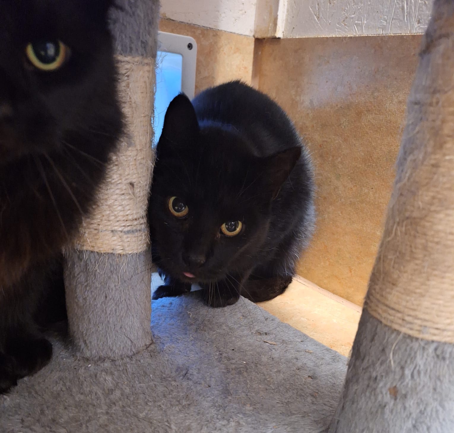 So, Baghira. BAGHIIIIIRA, Essen ist da! JA, es gibt wieder Futter! Hä?! Natürlich bringt man uns Futter, sonst würde da kein Mensch… oh, warte mal, du bist nicht der Lieferbote, oder? Grummel, ich hatte extra über Katzerando bestellt, zwei Spezialmenüs, eine Nierenschonend Spezialmischung für mich und eines mit Katzenleckerlies und eine Diätkatzenmilch, geschüttelt, nicht gerührt. Hmpf… egal, wo du schon mal hier bist: Puschel mein Name und das hinter dir ist Baghira! Wir sind beide sehr schüchtern, aber wenn man viel Zeit investiert, dann lassen wir uns vielleicht streicheln. Wir selbst sind eher ruhige Katzen, wobei ich leider nierenkrank bin – ja, das habe ich mir nicht so ausgesucht, irgendwie hab ich wohl bei der Verteilung der Probleme die Pfote gehoben, keine Ahnung. Daher muss ich beim Essen aufpassen und daher wäre es schon toll, wenn der LIEFERSERVICE ENDLICH MAL PÜNKTLICH DA WÄRE! Wie dem auch sei… naja, muss ich eben aufs Essen aufpassen!