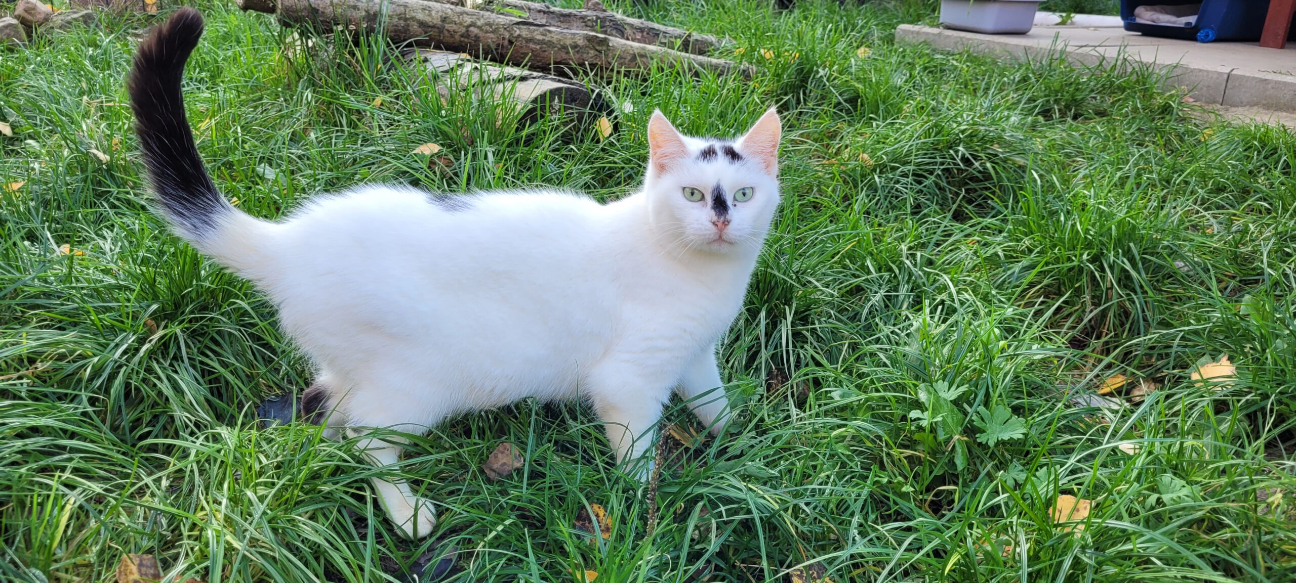 Ich bin eigentlich zu anderen Katzen ganz verträglich, wobei ich hier noch nicht die Gelegenheit hatte, das mit Sicherheit herauszufinden – aber derzeit habe ich ein gutes Gefühl! Freigang muss nicht unbedingt sein, ich bin da neutral eingestellt. Insgesamt habe ich ein positives Gefühl bei allem, auch bei dir! Also, wenn du mir eine Chance geben willst, einfach laut „Sakura“ rufen und dann hüpfe ich in deinen Korb!