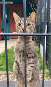 Menschen gegenüber bin ich noch vorsichtig, manchmal scheu. Sofern du viel Geduld mitbringst, verfolge ich dich überall hin & vielleicht darfst du mich sogar streicheln – vor allem, wenn du mir Essen bringst!