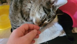 Also, du hast dich für zwei Katzen interessiert und wolltest eine, die lieb, verkuschelt und neugierig ist. Und die andere die sollte anfangs schüchtern sein. Beide hast du entdeckt und was noch viel verrückter ist: Sie erzählen dir einfach so deine Vergangenheit und deine Zukunft. Mystisch, sag ich dir. Aber warte, ich sehe auch deine Zukunft: Du gehst daraufhin, völlig beeindruckt, zur Leitung der Station und fragst, ob du Teresa und Gisela mitnehmen kannst. Dann packst du uns, äh, ich meine: die beiden Katzen ein und fährst mit uns in unser… deren neues Zuhause! HA! Verrückt, was? Tja, wir können eben die Zukunft vorhersagen. Wenn du uns jetzt noch einen großen Gefallen tun könntest, könntest du uns die Geschichte… eh deine Zukunft wahr werden lassen. Denk daran: Teresa und Gisela, ok? Dank dir!