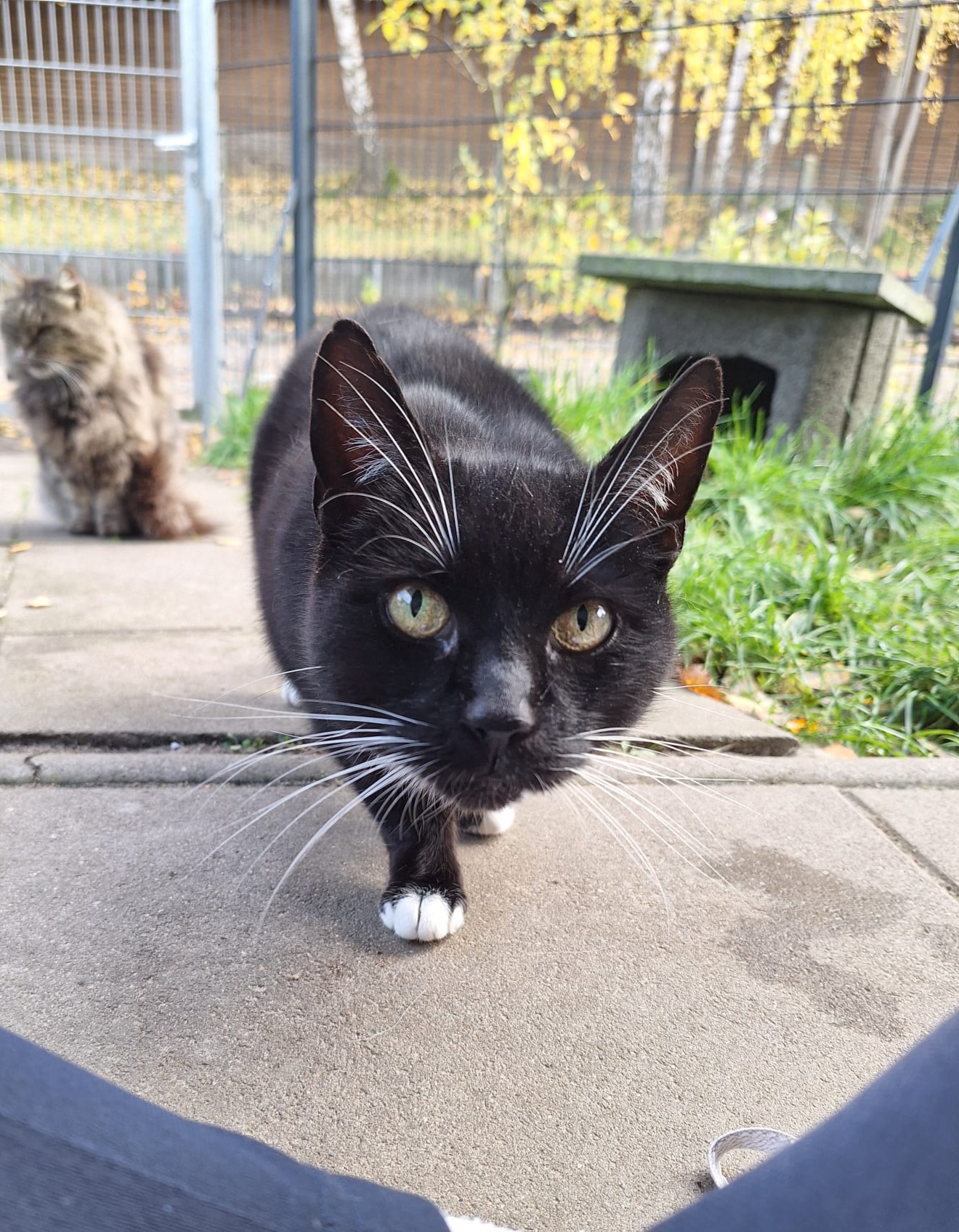 Wo habe ich nur meine weißen Stiefelchen gelassen, Himmel, wenn mein Kopf nicht angeklebt wäre, dann… oh, hallo, Tini mein Name und ich bin erfreut, dich kennen zu lernen. Naja, normalerweise bin ich etwas scheu, aber so langsam taue ich auf. Andere Katzen, naja, es gibt sie, mehr muss ich nicht wissen. Nur, hast du meine weißen Stiefelchen gesehen? Ich brauche sie für meinen Freigang, denn der ist mir wichtig. Falls du also zufällig zu denen gehörst, die mich hier abholen wollen: Ich bin gerne mit dabei! Hier kann man nicht wirklich wandern und zuweilen klaut man mir meine Sachen hier, doch, ehrlich! Ich suche die ganze Zeit meine…
